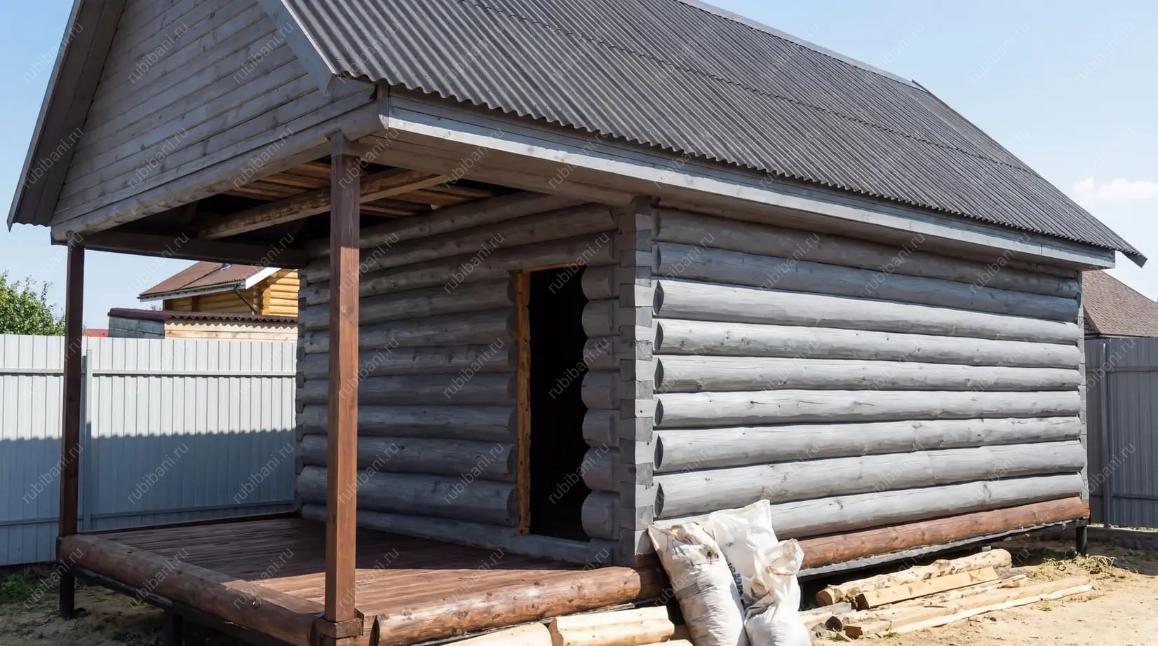 Баня 5×4 с рубленой террасой, 30 м²
