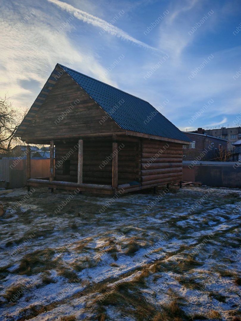 Баня 5×4 с рубленой террасой, 30 м²